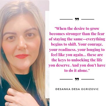 Iβm Desanka βDesaβ Ogrizovic β Therapist, Womenβs Empowerment & Life Coach, Mentor (Intuitive Guidance), Workshop Facilitator, and Weight Loss Doula.